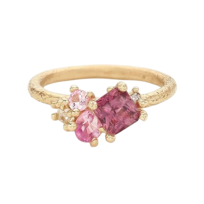 Pink Sapphire and Champagne Diamond Cluster Ring