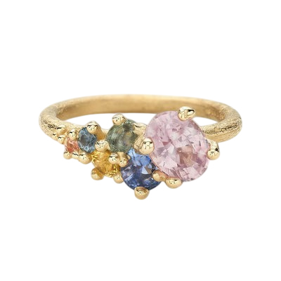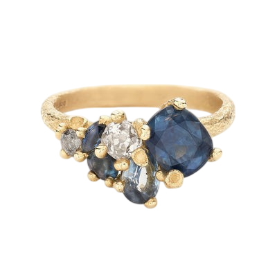 Asymmetric Sapphire and Diamond Cluster Ring