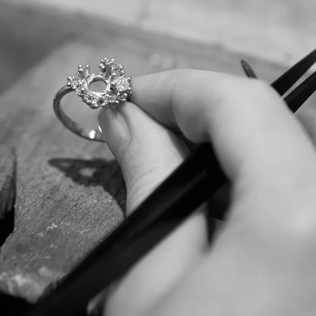 The emeralds act as luminous points of life within the design, while the diamonds add subtle brilliance that enhances their depth. Together they create a delicate balance between strength and fluidity, nature and refinement.